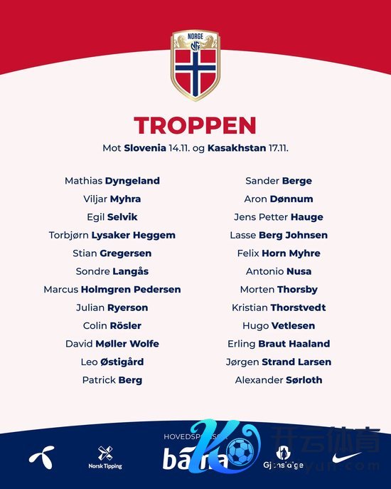挪威国度队公布了最新一期的国度队大名单体育集锦,在11月份的外洋比赛日,挪威队将在欧国联B级别联赛客场对阵斯洛文尼亚、主场对阵哈萨克斯坦。