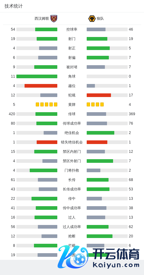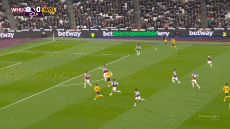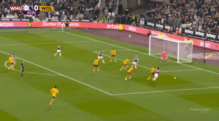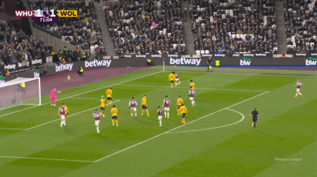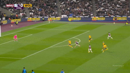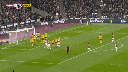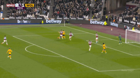 第53分钟,鲍恩角球开到后点,绍切克头球破门,西汉姆联1-0狼队
