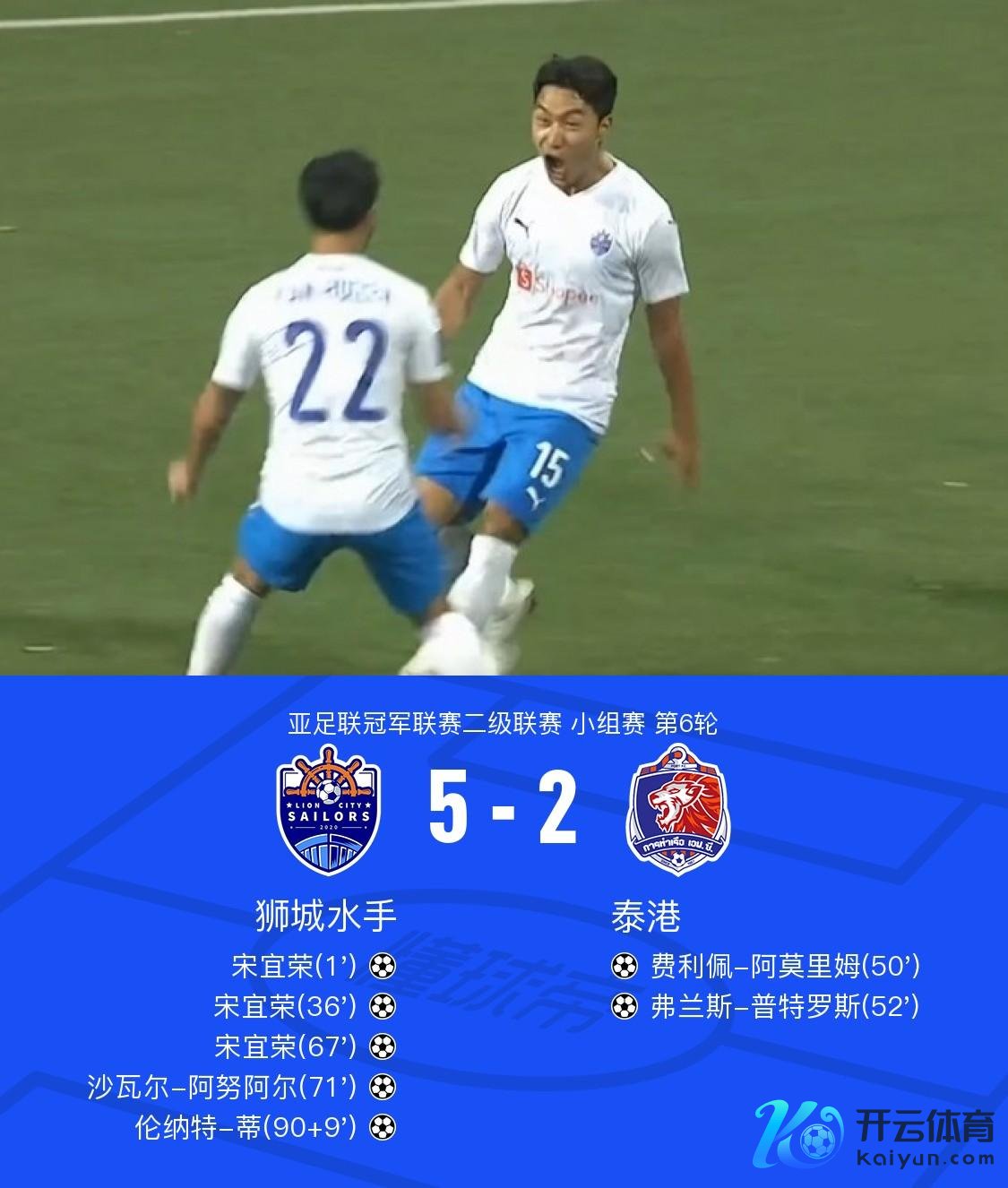 第90+9分钟,宋宜荣助攻,伦纳特-蒂破门送定比分,狮城水手5-2
